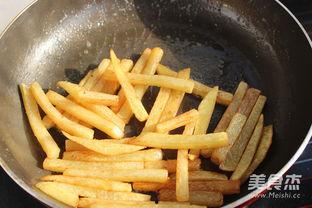 3. 复炸:炸好的薯条捞出后,可以放入油锅中复炸一次,这样可以使薯条更加酥脆。